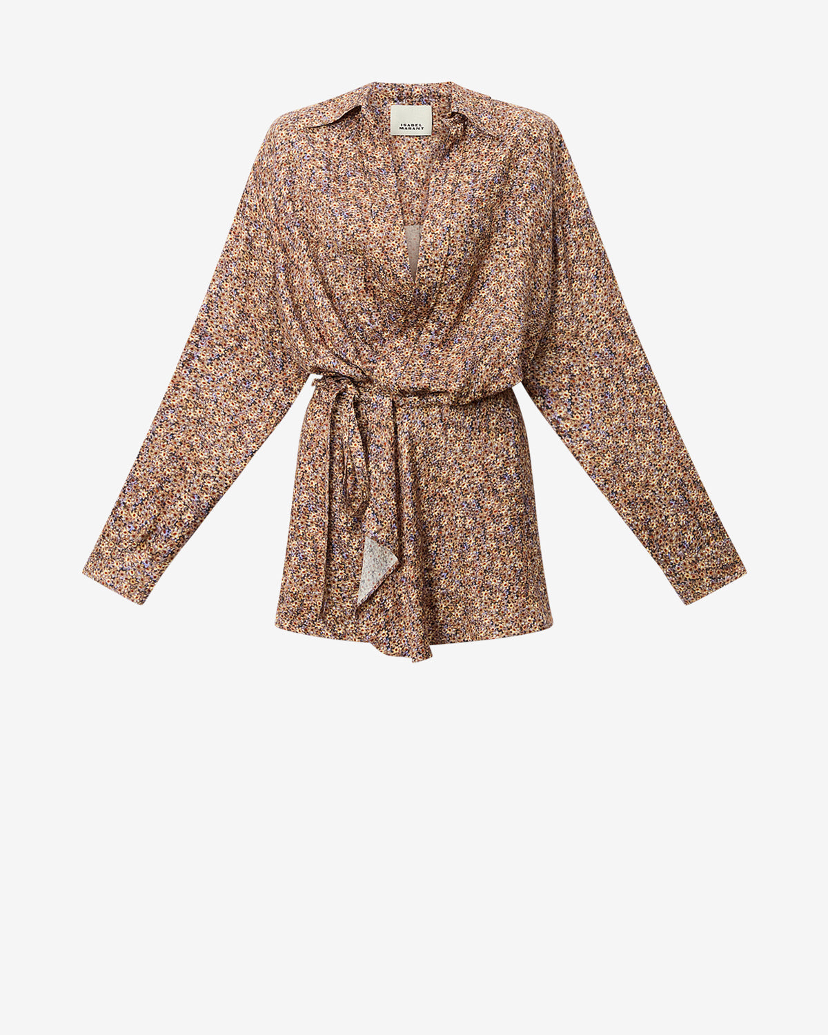 Shirt collar with a low-cut, wrap-over style V-neckline